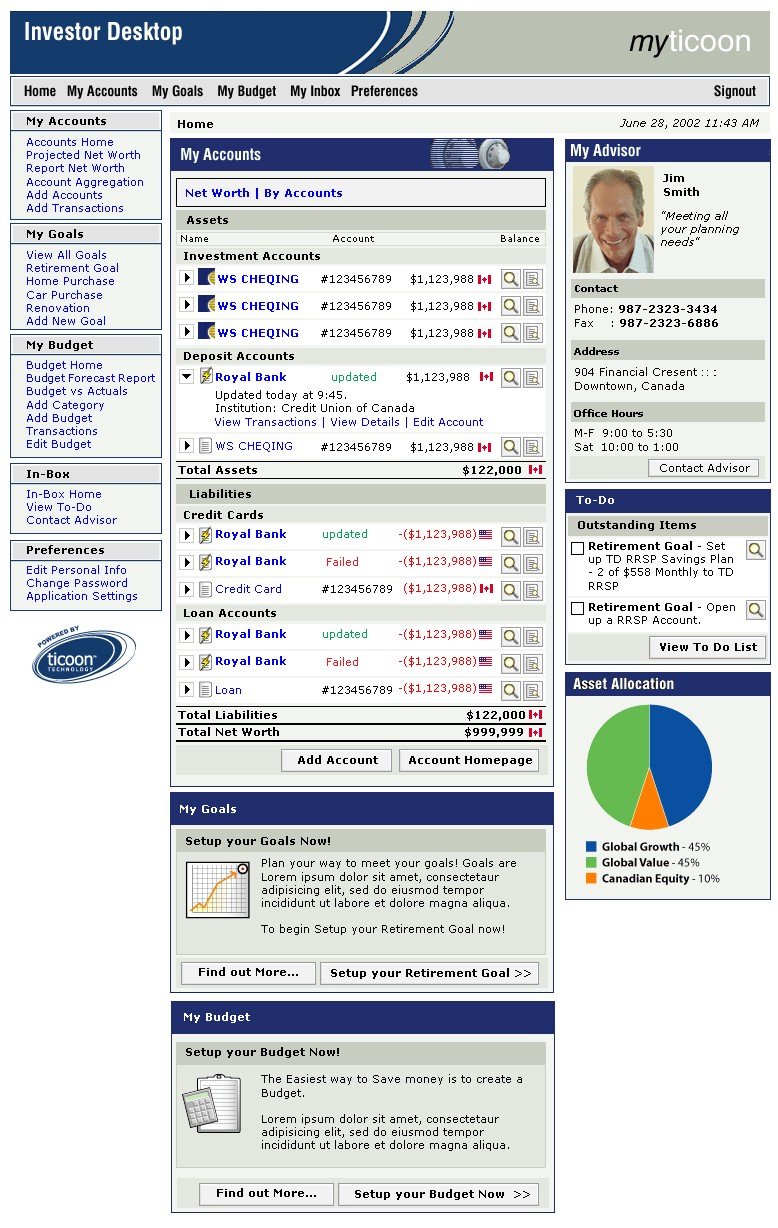 The Investor Desktop provided clients with everything they need to manage their financial life. This includes: